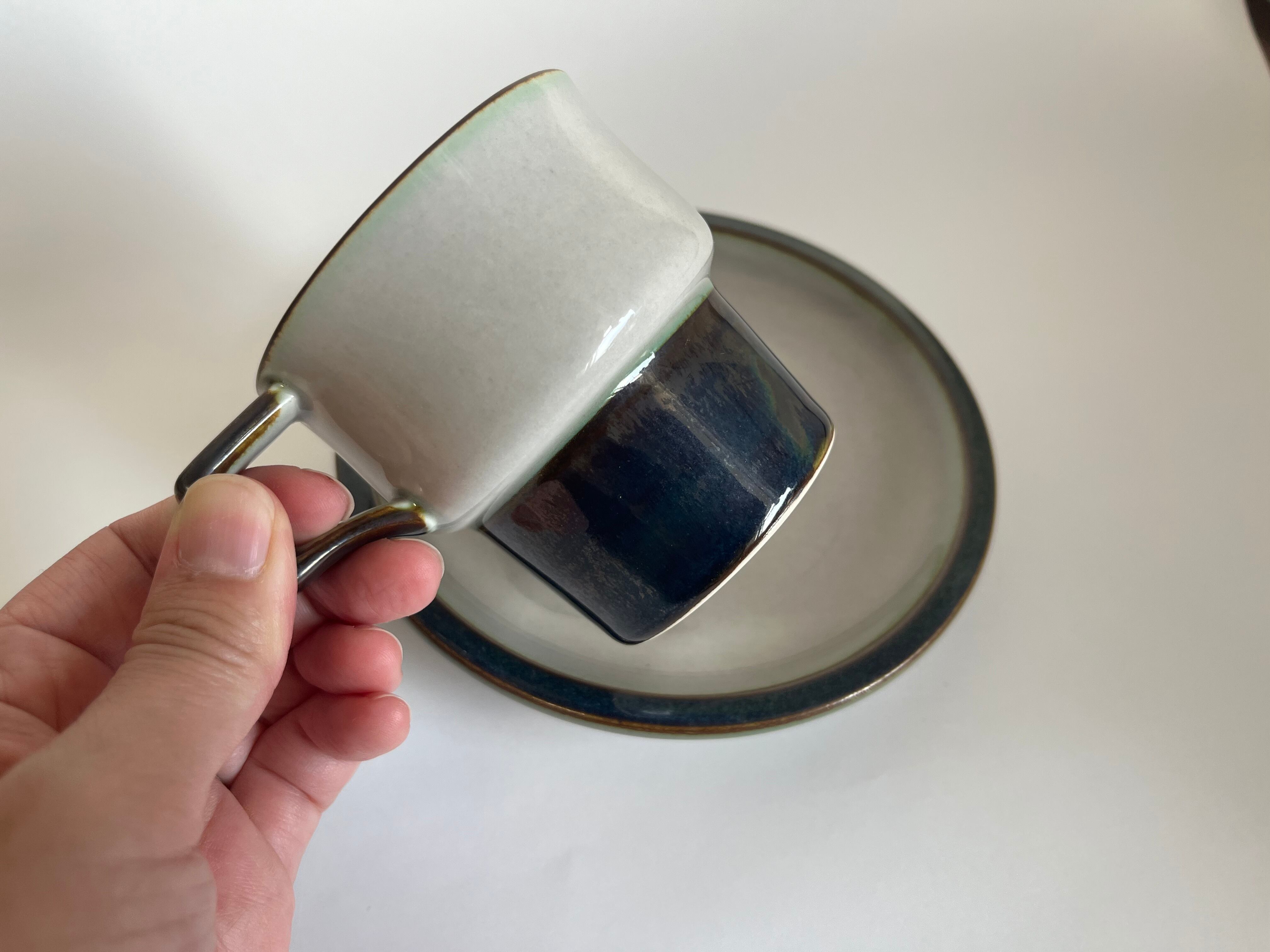 落ち着いた色味ですが、実際に手に取るととても奥行きのある色で、角度によってうっすらグリーンがかったり、濃紺のようだったり、ブラウンぽく見えたり…見飽きない味わい深い一脚です。
