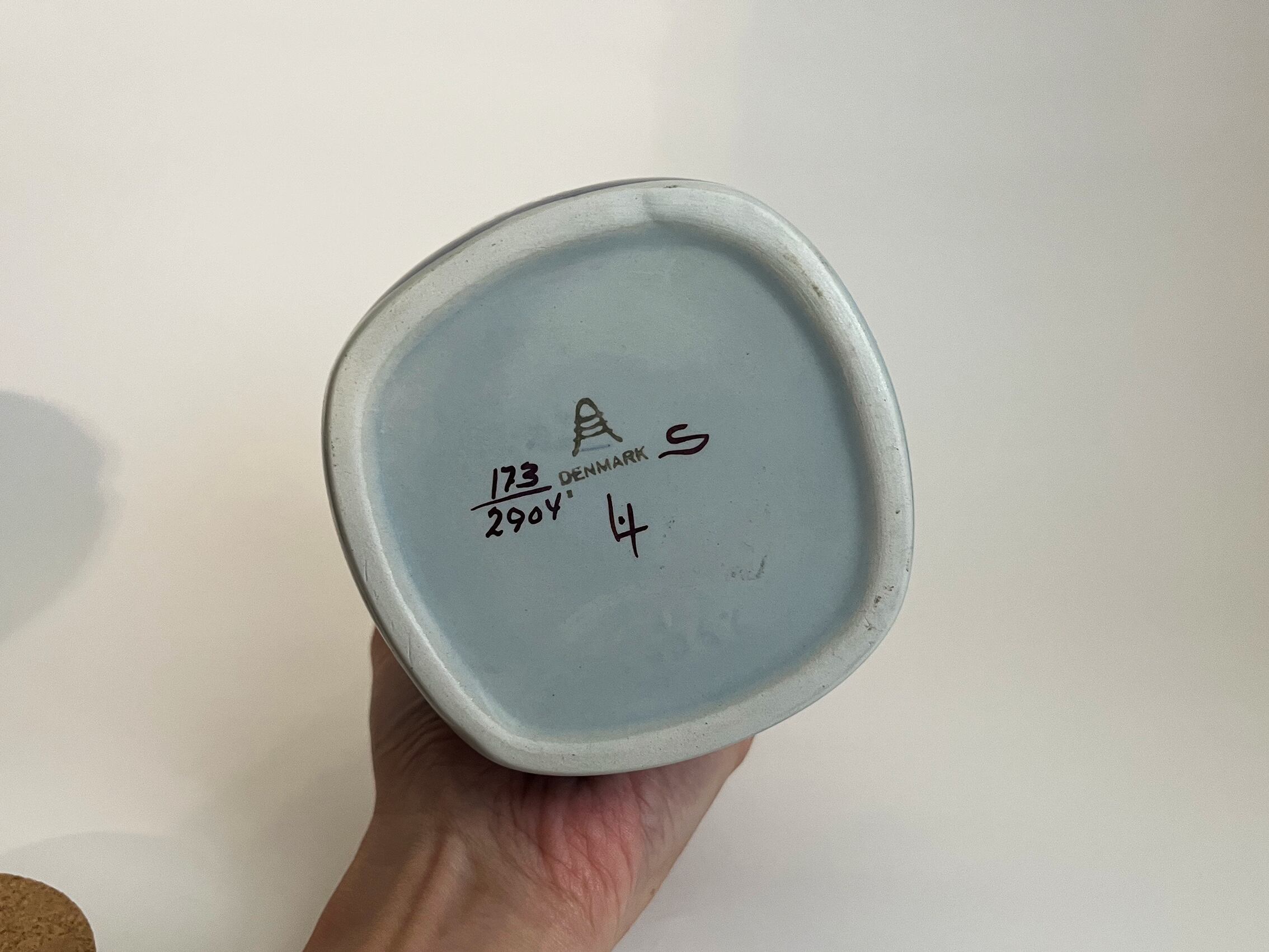 ロイヤルコペンハーゲンのロゴのように年代の特定が容易ではないですが、アルミニアロゴがあるということは少なくとも1969年以前、こちらはおそらく60年台のものだと思われます。