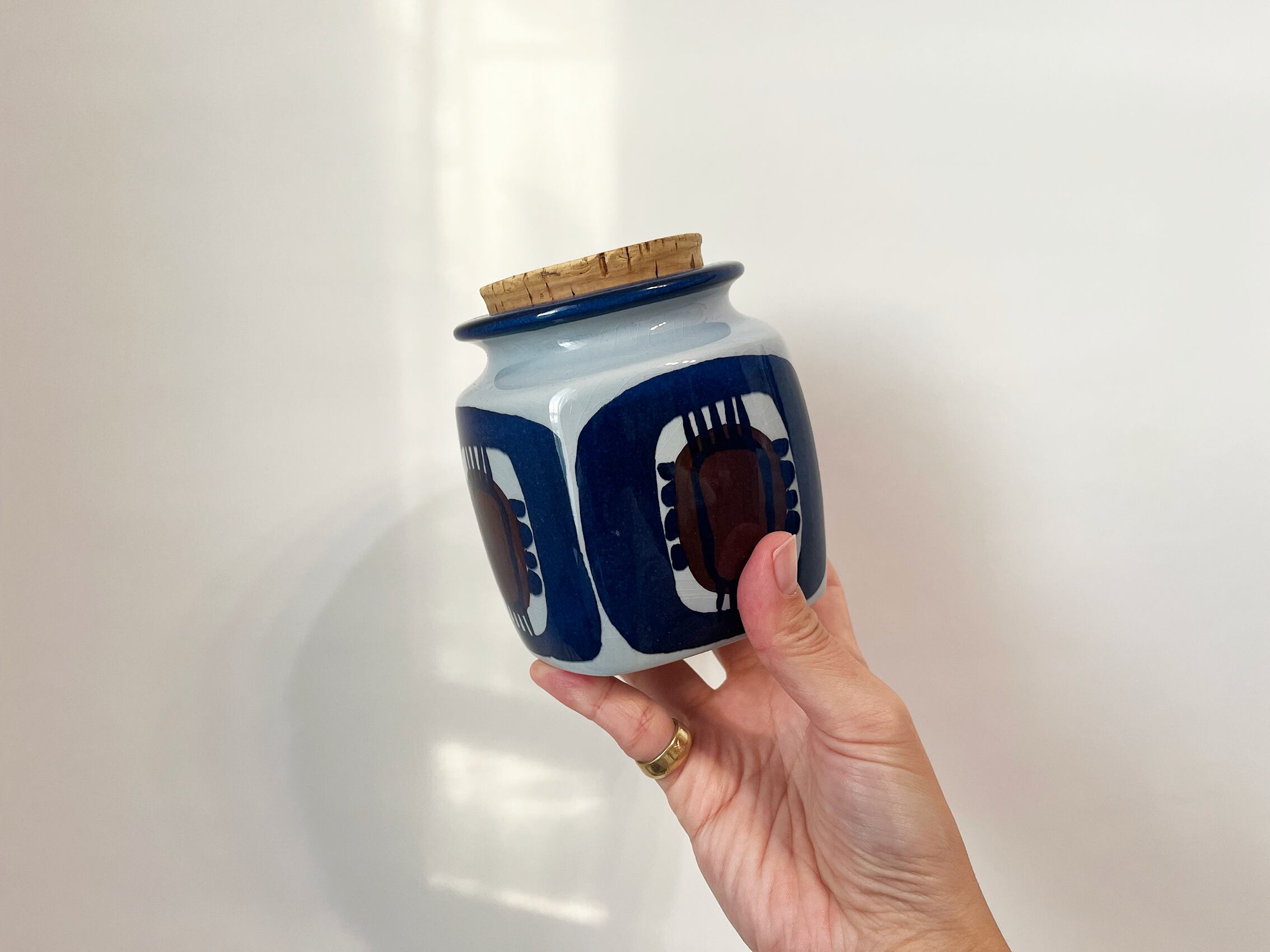 Royal Copenhagen の前身となった工房のひとつ、B&Gについては以前すこし触れたことがありますが、こちらはもう一つの工房Aluminia のスタンプが押されたキャニスターです。